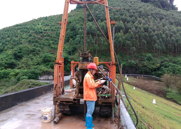 近日,我院完成了柳州市柳江区根林、三斗水库除险加固工程勘察项目野外工作任务,在本次野外工作中,根林水库完成地质钻孔7个,钻孔进尺为111.0m,取土样为19组,标贯试验为9组,注水试验为7组,压水试验为5组,地质调查点10个,拍摄各类相关照片若干张,野外地质、水文地质综合调查范围面积约12.5km2。三斗水库野外工作完成地质钻孔9个,钻孔进尺为149.9m,取土样为30组,标贯试验为11组,注水试验为9组,压水试验为5组,地质调查点10个,拍摄各类相关照片若干张,野外地质、水文地质综合调查范围面积约13.2km2。项目组对大坝进行了钻探、取样、注水试验及压水试验,了解了大坝坝体、坝基岩性及存在的渗漏问题。