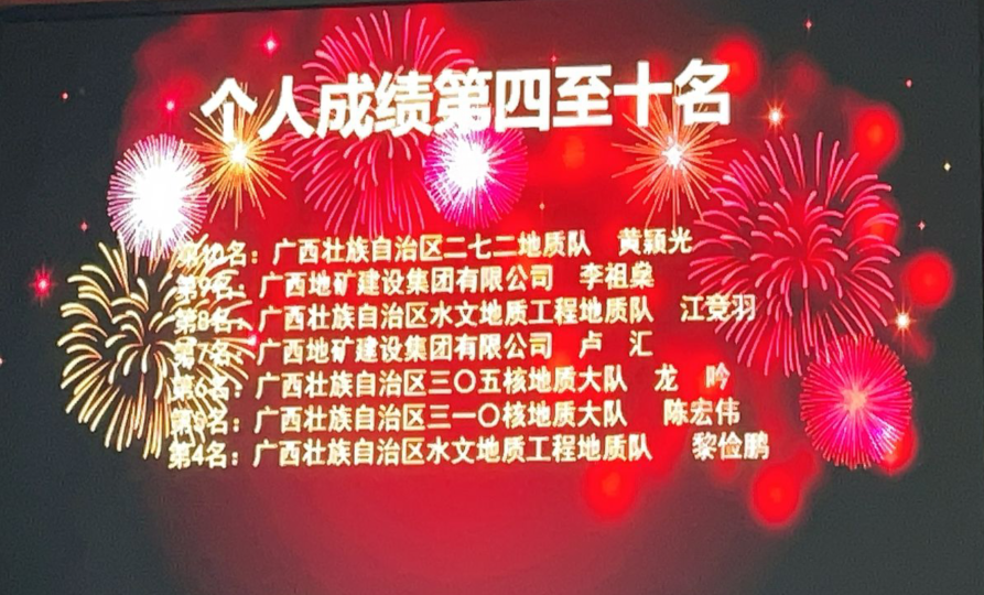 此次竞赛的形式分为理论知识和技能操作两项内容,范围涉及水工环地质基础理论、调查技术方法、勘查和试验规范以及水工环地质调查、地质编录、试验与监测、样品采集与处理、综合整理与成果编制等方面。在比赛过程中,我院参赛队伍与地矿局近20支队伍一百余名选手同台竞技,经过3天激烈角逐,我院参赛队伍获得了优秀组织奖,黄颖光获得个了人成绩第10名及广西地质勘查行业地质调查员技术能手称号,唐舜光获得了优秀裁判员奖。(编辑:张白雪;校对:廖德好;审核:翁敦贤)