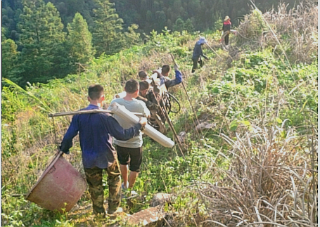 在该项目中,我院面临着住宿环境恶劣、极端天气频发等困难,但最令我院勘察队伍感到头疼的是,项目的勘探点多分布在深山,丛林茂密,山体陡峭,山上无修筑道路,技术员走动已十分困难,沉重的钻机设备更是无法用机器运送。为顺利开展勘察任务,我院勘察队伍咬牙做出了决定:拆卸钻机并采取人工搬运!