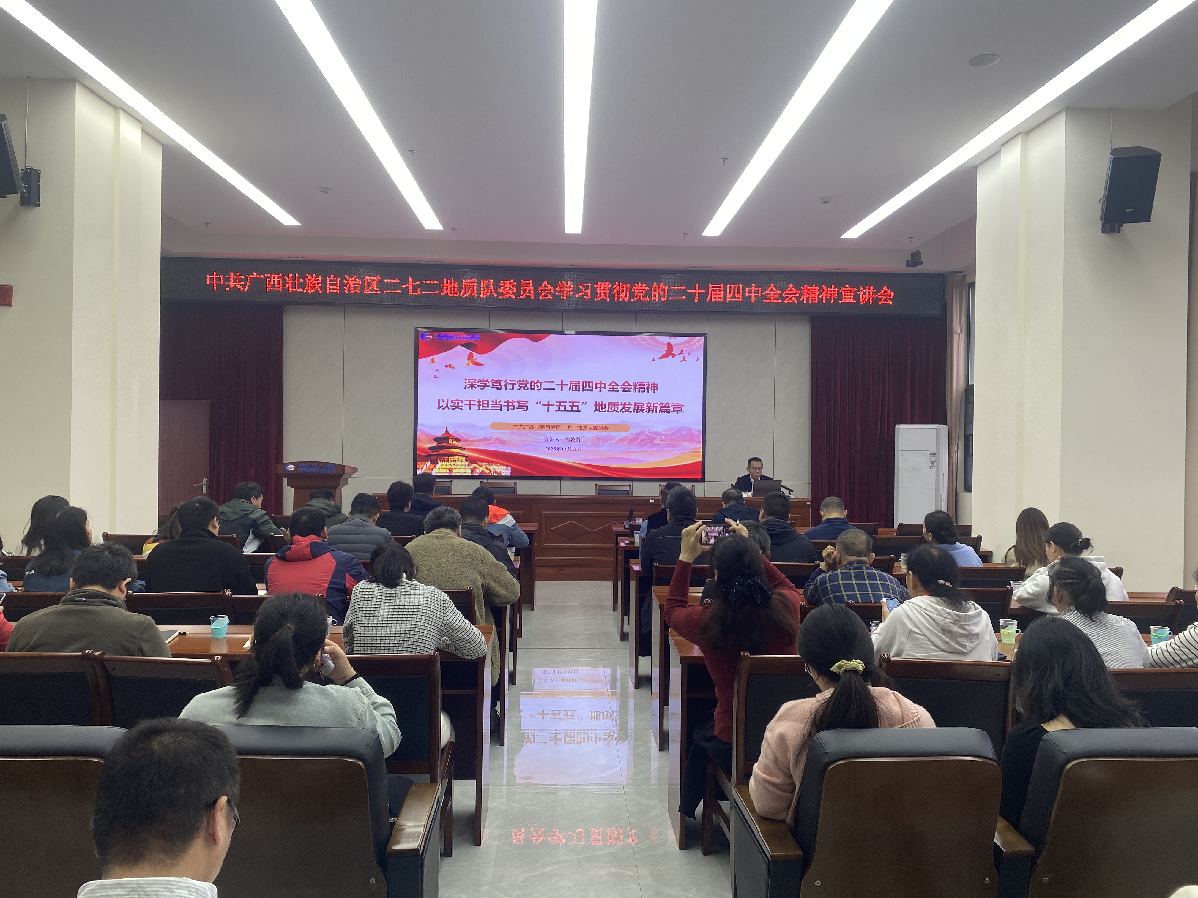 此次宣讲会,不仅有效提升了与会人员对党的二十届四中全会精神的政治领悟力、思想穿透力和实践执行力,更进一步凝聚了上下同心、共促发展的奋进力量。下一步,我队将以此次宣讲会为重要契机,持续深化全会精神学习宣传贯彻工作,通过深学细悟原文本、开展主题实践活动等多种形式推动学习走深走实。在主责主业推进上,紧扣全会“统筹发展和安全”“服务国家战略全局”等部署,立足地质工作基础性、公益性、战略性定位,全面投身新一轮找矿突破战略行动,在海洋地质勘查、生态修复、耕地保护、矿山生态修复、隐蔽致灾治理、乡村振兴等领域主动作为,让地质工作精准对接“十五五”发展需求,践行责任担当。