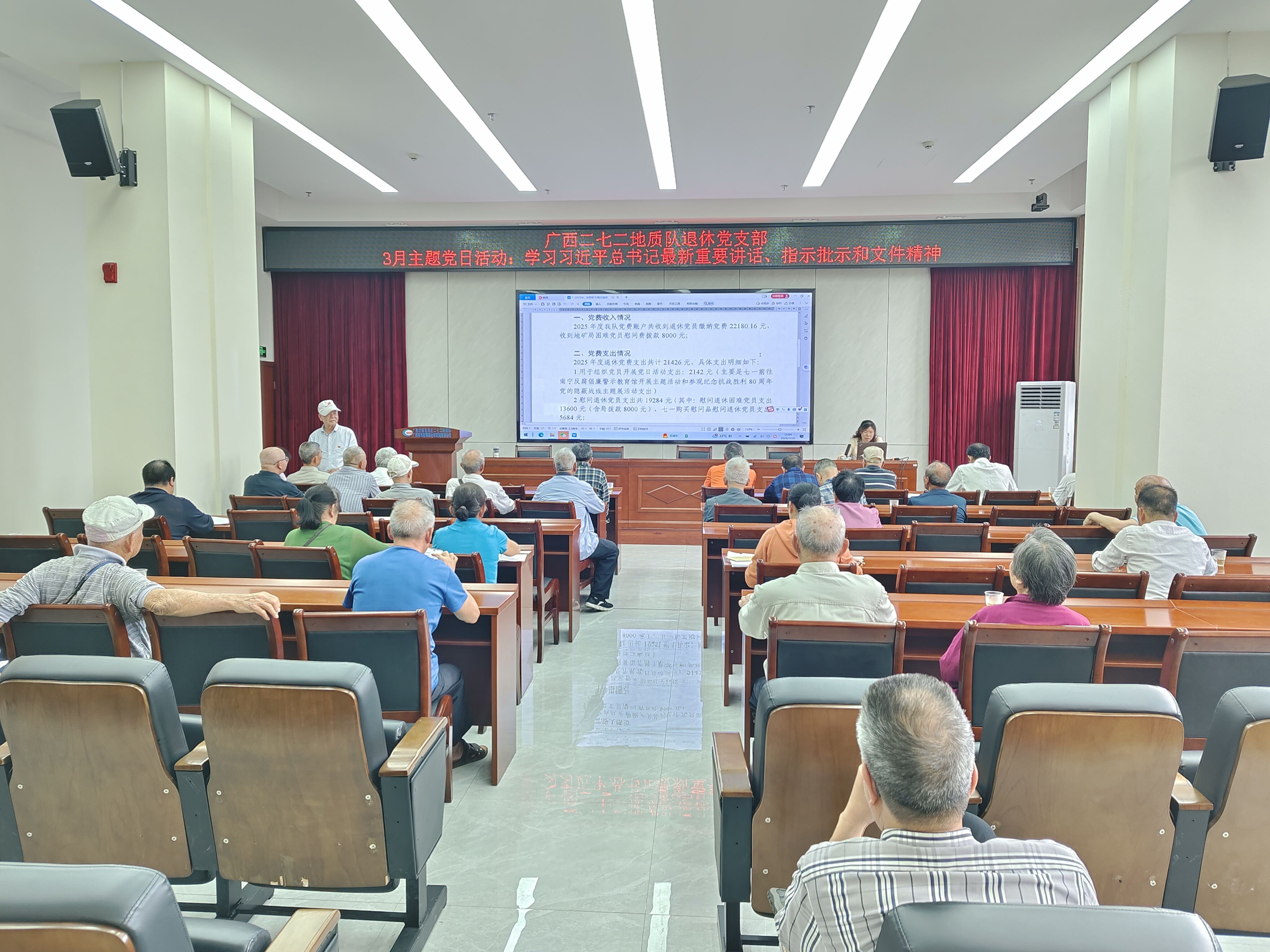 本网讯(周幸 报道)3月26日,退休干部职工党总支部组织召开党员大会暨3月主题党日活动,40余名退休党员参加会议。